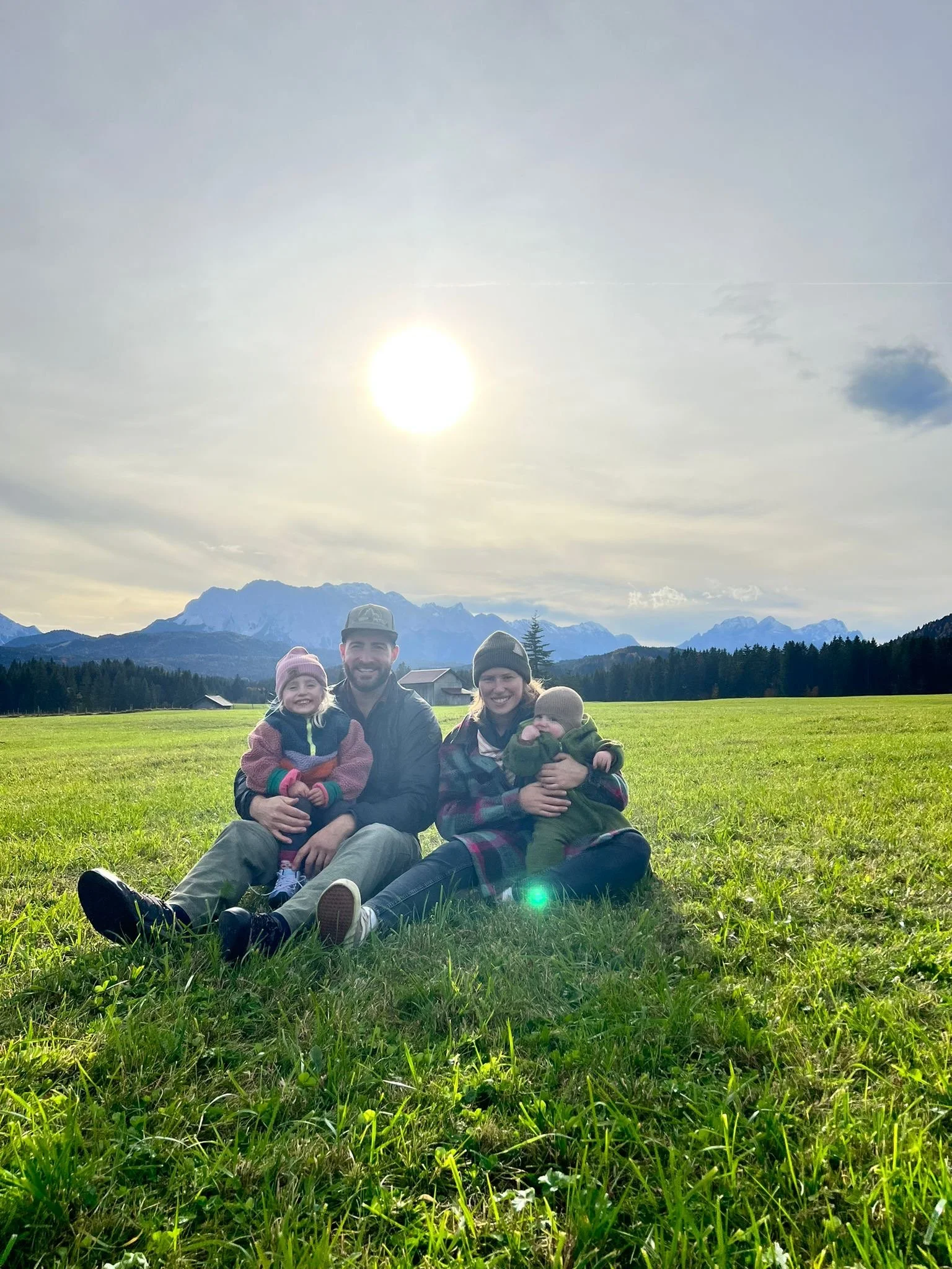 Wir sind Hans Steffen und Marie mit Lotte und Fritz. 2013 sind wir aus Liebe zu den Bergen nach Krün gezogen.